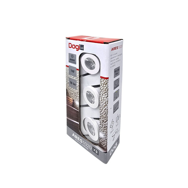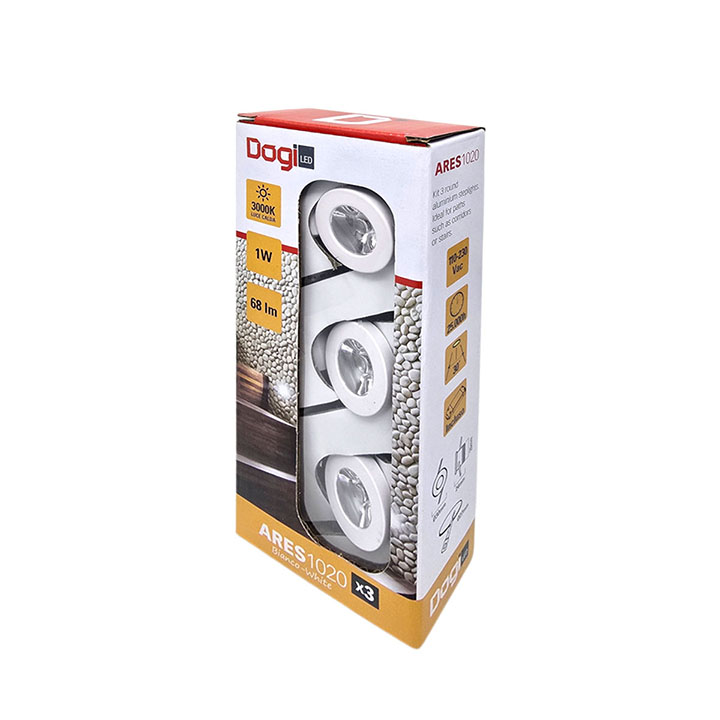 | AR1020SETWN40 | Round white step light 1x1W, LN, 30°, 230Vac, IP20, Set of 3 |
