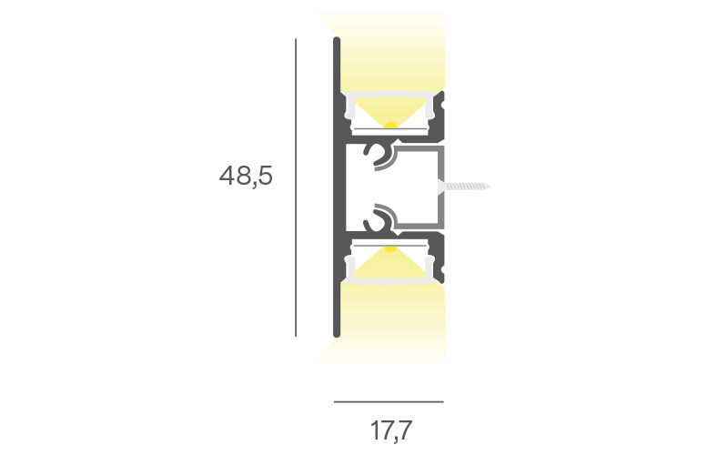Indoor wall light with double indirect emission beam. Possible lengh 33cm, 52 cm and other lenghts on request, colors and light colors