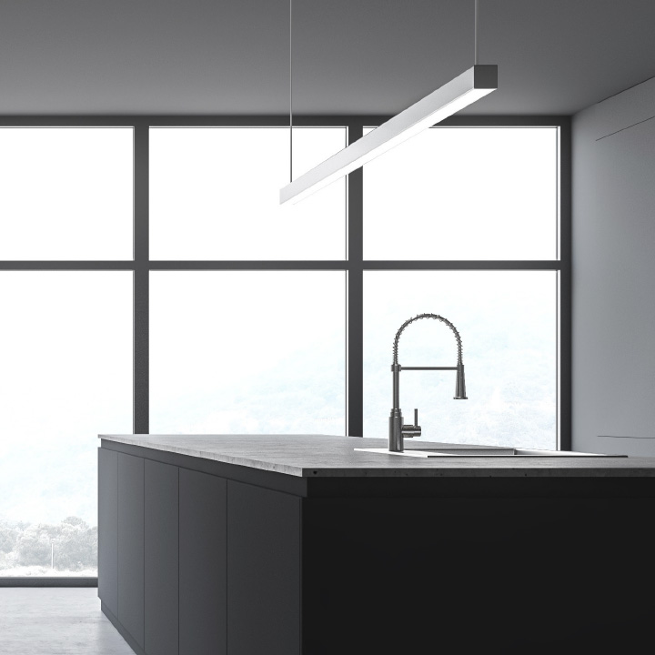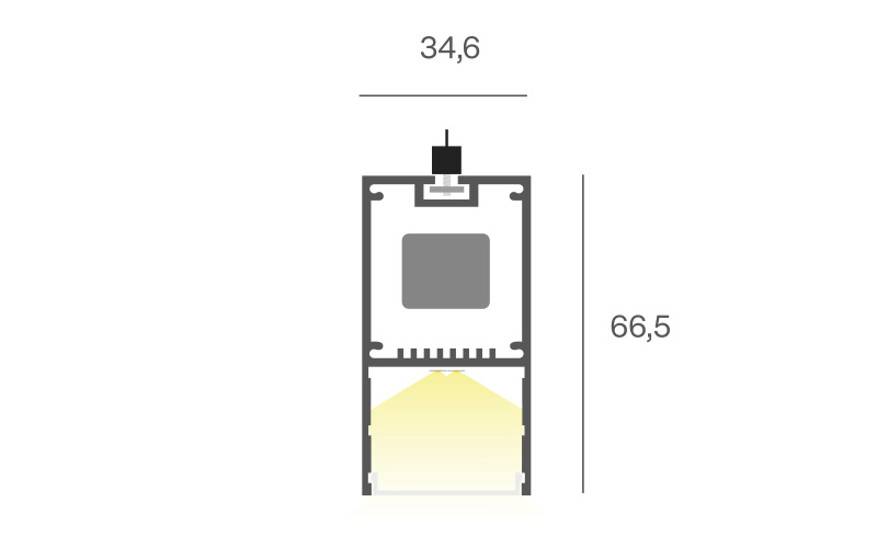 Rectangular section aluminum profile, for suspension mounting, with internal housing prepared for driver insertion. Available in bars from 20cm to 2m, in different colors and light tones