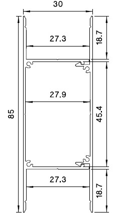| PRF016/300G | Double beam wall mounted aluminium profile (3m bar) |