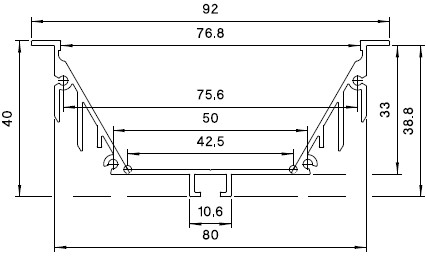 PRF039/100G Anodized aluminum recessed profile (1m bar)