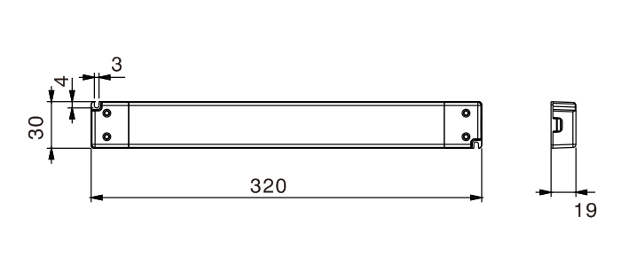 Alimentatori slim in tensione costante, per interni, con case in plastica e morsettiera protetta per collegamenti.
