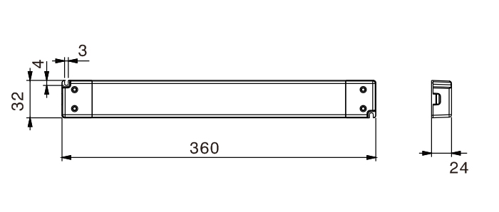 Alimentatori slim in tensione costante, per interni, con case in plastica e morsettiera protetta per collegamenti.