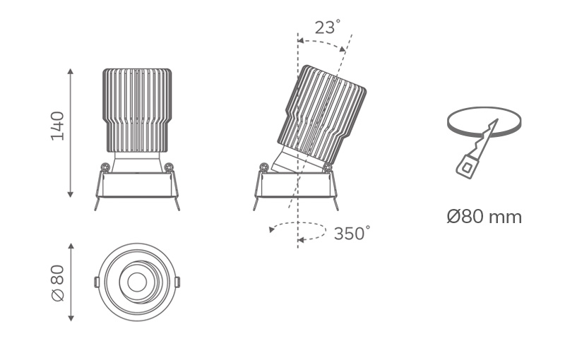 | DW500-30N25 | ZENO DOWNLIGHT ORIENTABILI 30W 80X140MM 4000K 25° |