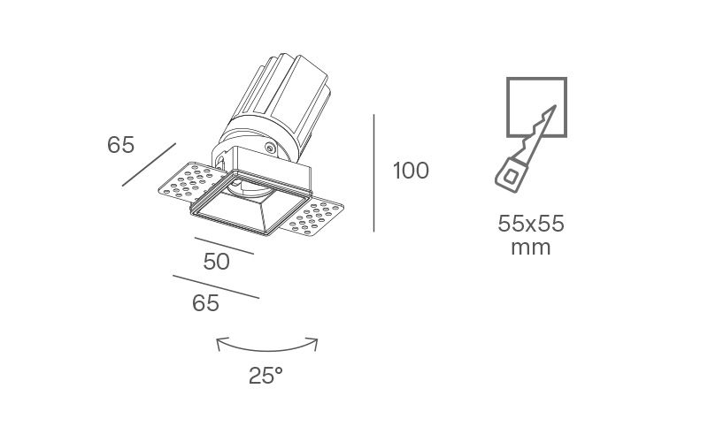 DWSOT400-10BC50 VALIER DOWNL.10W 3000K SQUARE OR.TRIMLESS 50° PAR. NERO