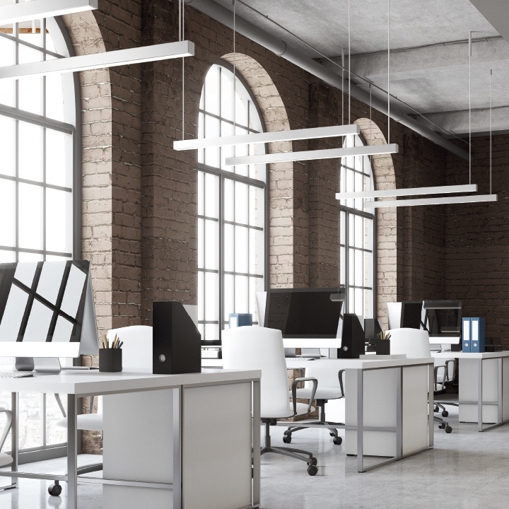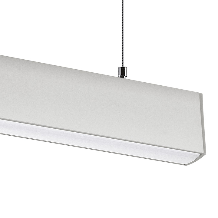Profilo in alluminio per montaggio a sospensione. Doppio fascio per illuinazione attiva e passiva. Disponibile in barre da 20cm a 2mt, in diverse colorazioni e tonalità luce