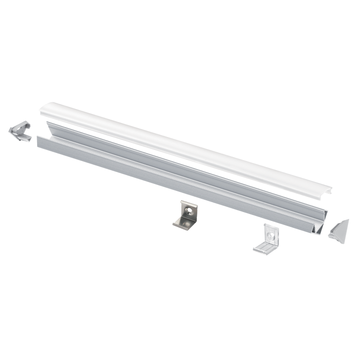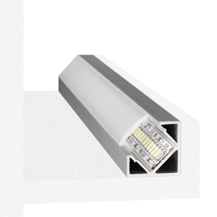 Profilo in alluminio estruso anodizzato angolare, ideale per l’installazione e raffreddamento delle strip a LED.