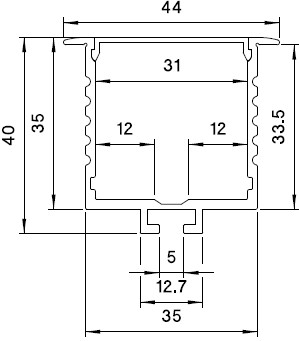 PRF035/100G Profilo anodizzato a U con flangia (barra da 1m)
